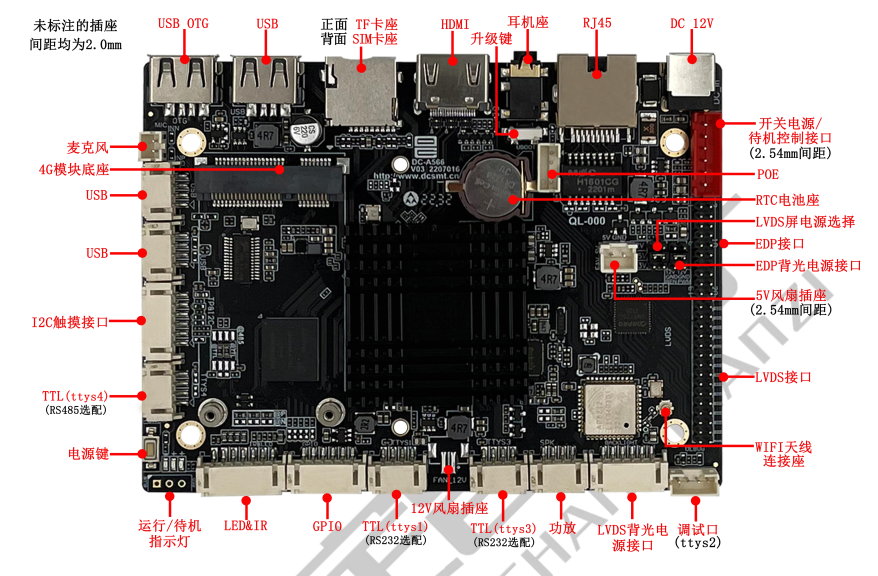 我们基于瑞芯微RK3566芯片架构研发安卓主板,主板图示如下