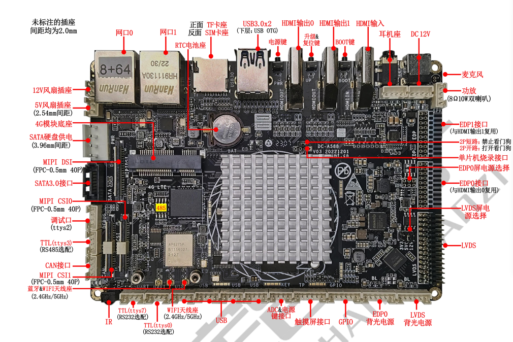 我们基于瑞芯微RK3588芯片架构研发推出边缘计算盒子专用安卓主板,图示如下